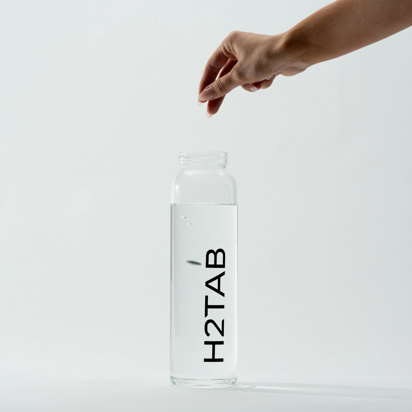 H2Tab tablets dissolve in water to create hydrogen-enriched water, providing a simple and portable way to enjoy daily hydration.